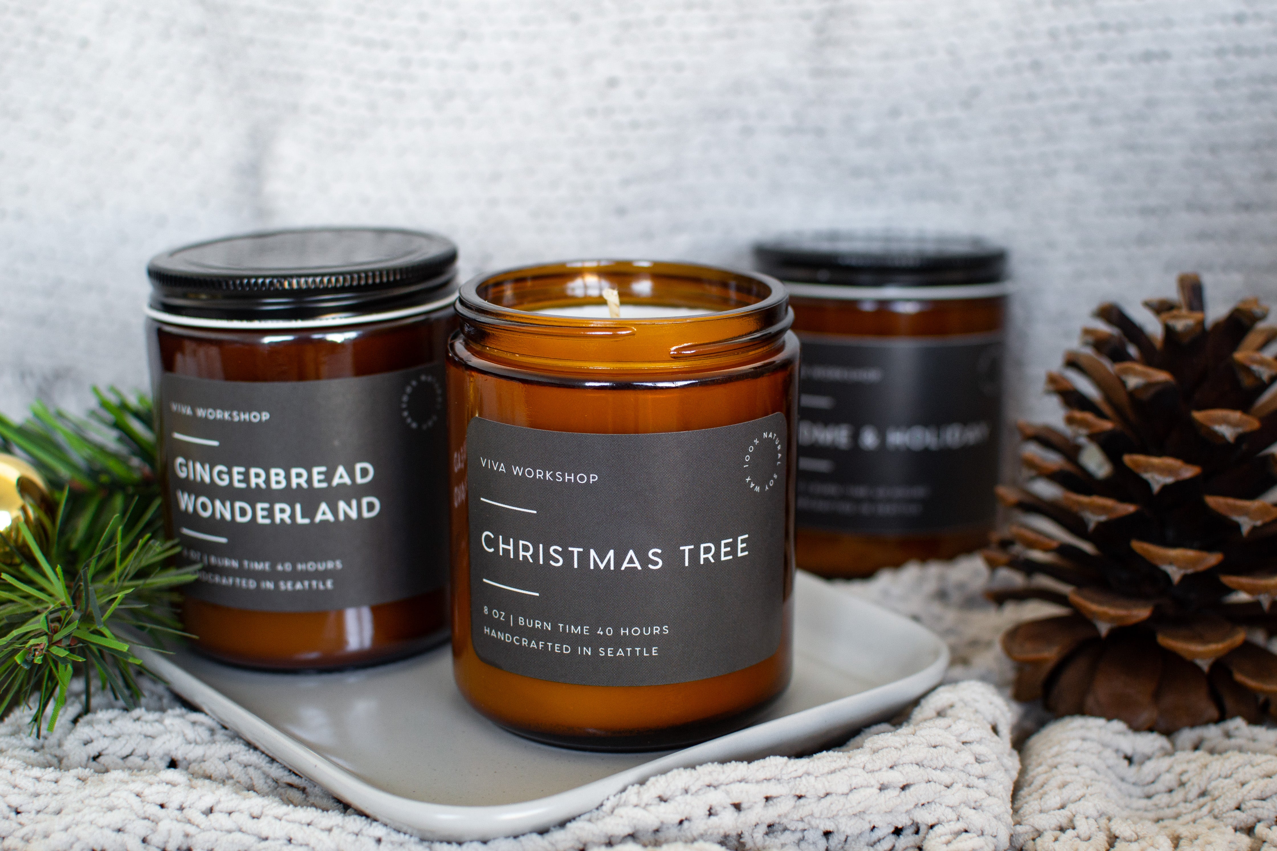 Joyful, nostalgic, and handcrafted with care, the Christmas Holiday Candle Set brings the magic of the season into your home. This trio of handmade soy wax candles captures the essence of holiday traditions — from the scent of fresh evergreens to the sweetness of gingerbread and the warmth of mulled cider. Available in two sizes — 4 oz and 8 oz — each candle is made from natural soy wax for a clean, long-lasting burn and a rich, immersive scent experience.