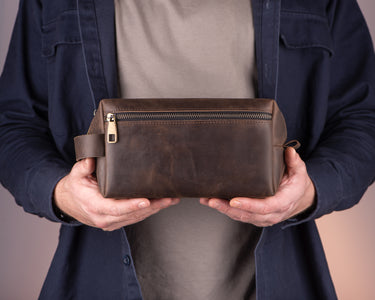 Brown Leather Toiletry Bag with Pocket