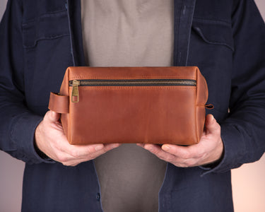 Cognac Leather Toiletry Bag with Pocket