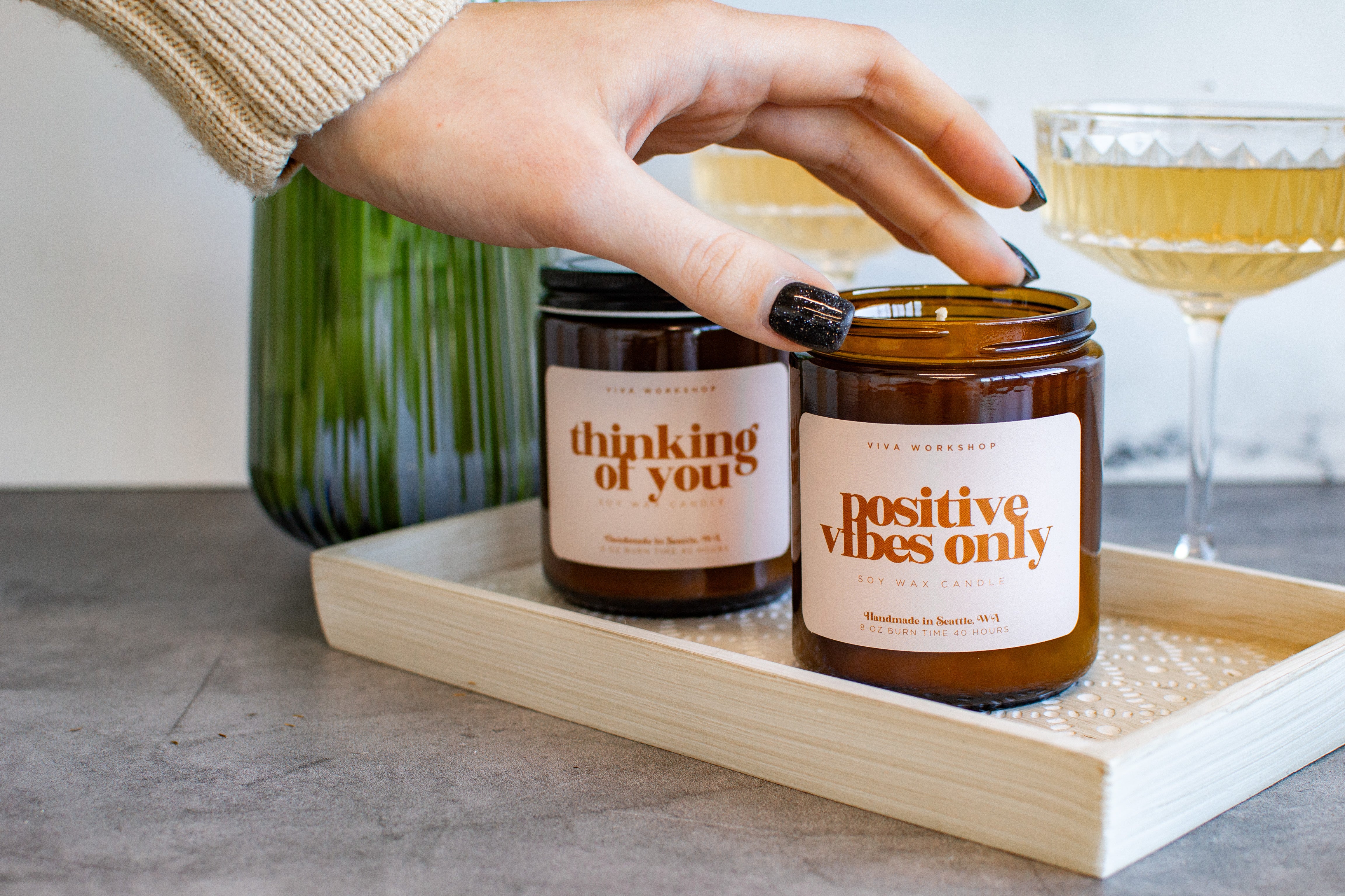 Our candles are made from natural soy wax — unlike paraffin, it produces minimal soot and is biodegradable.