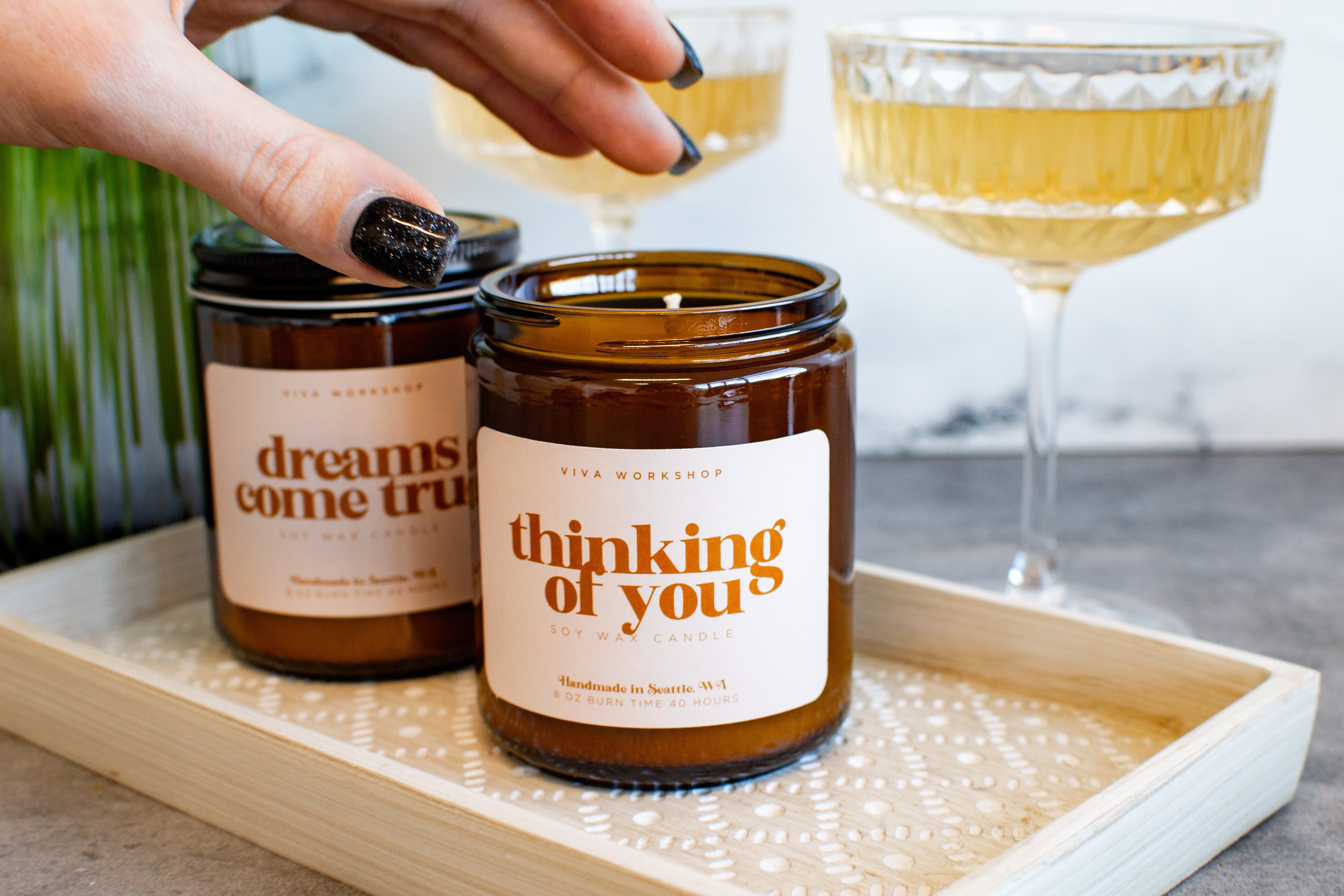 Our candles are made from natural soy wax — unlike paraffin, it produces minimal soot and is biodegradable.