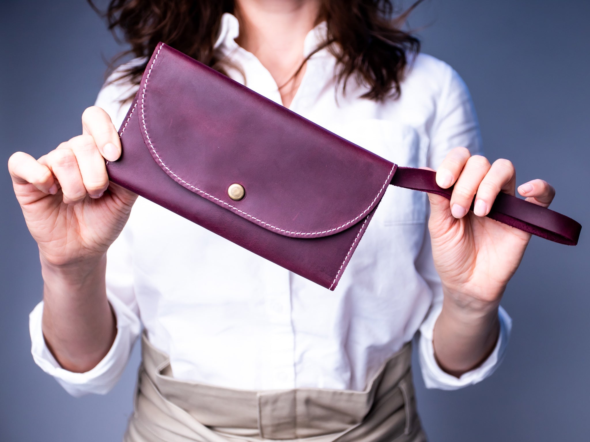 Burgundy Full-Grain Leather Women's Envelope Wallet $59.00 /BrownBurgundyCognacAvailable in 3 colors -