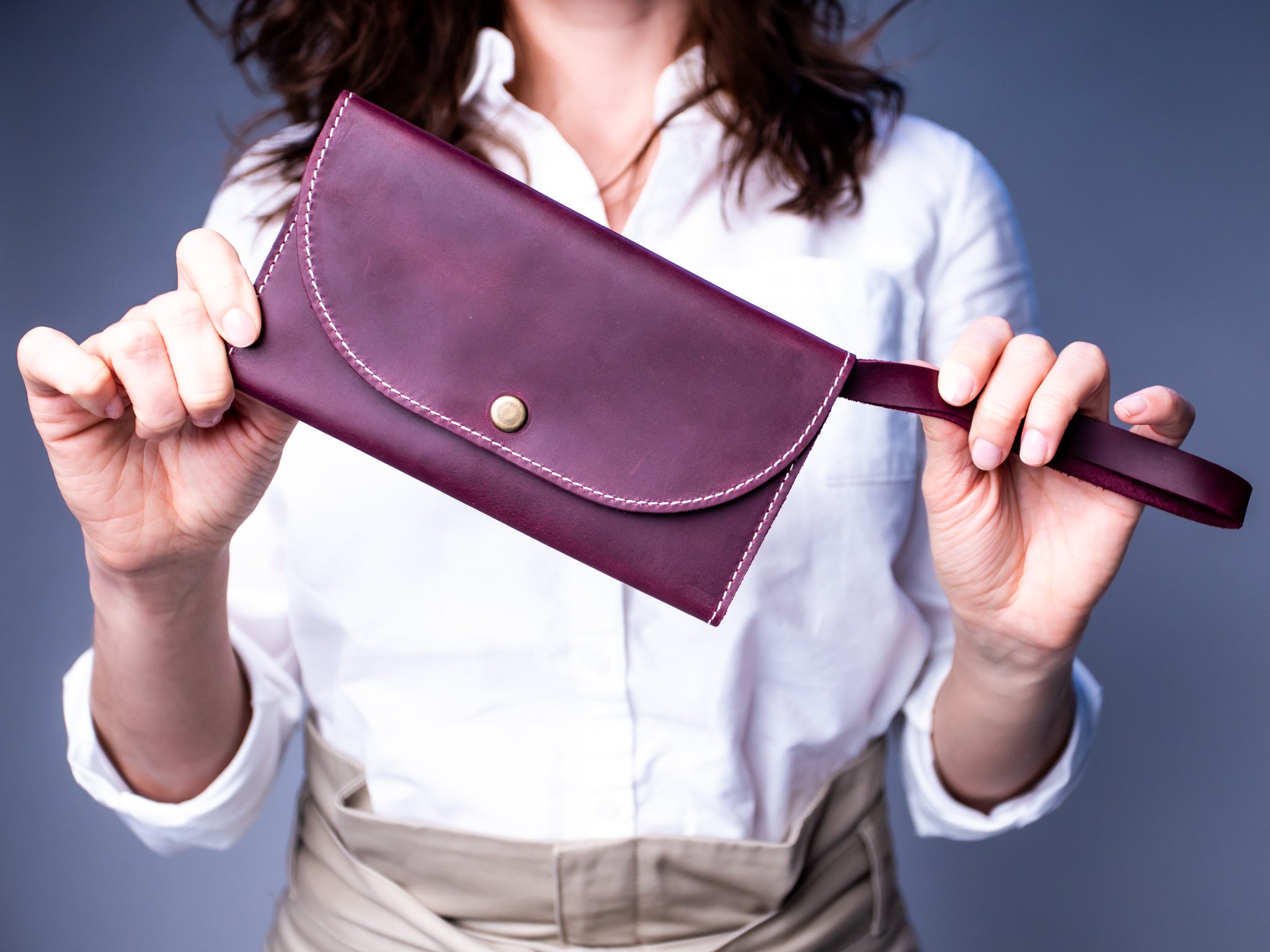Burgundy Full-Grain Leather Women's Envelope Wallet