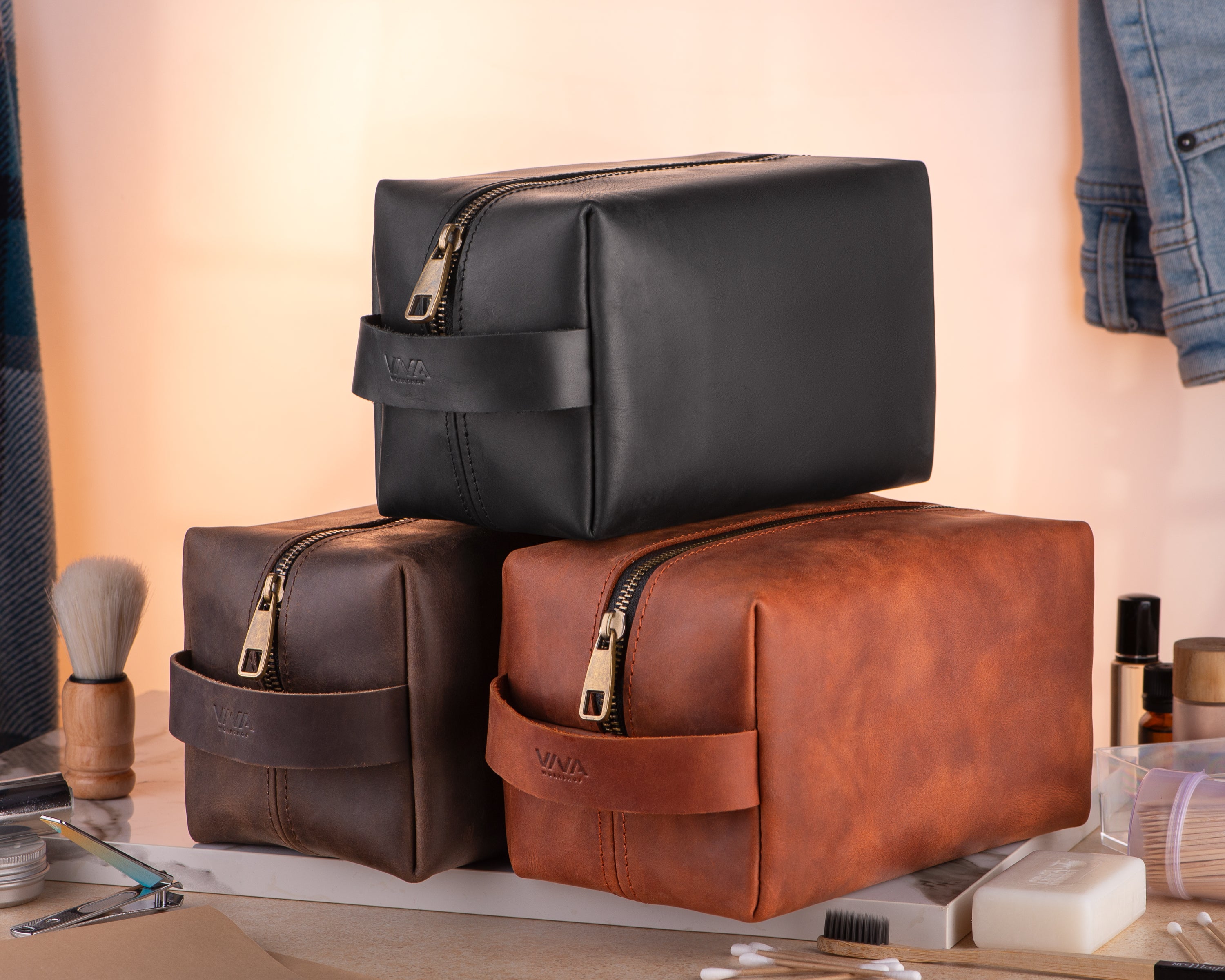 Black Leather Toiletry Bag